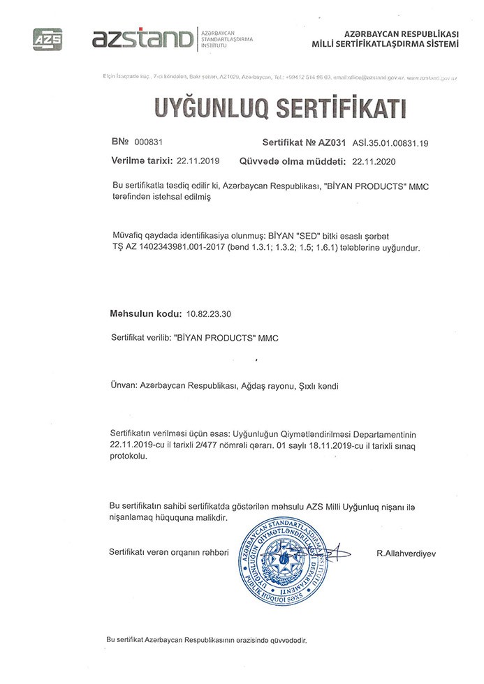 Torpaq sahələrimizdə yetişdirilən ekoloji təmiz bitkilərdən zavodda insan orqanizminə müsbət təsir göstərəcək yüksək keyfiyyətli bioloji fəallığa malik qida əlavələri istehsal etmək, Azərbaycan brendini dünya bazarına çıxartmaqla ölkəmizi tanıtmaq, əkinçilik, istehsal və sənaye sahələri üzrə dünya liderlərindən biri olmaq ən ündə amallarımızdan biridir.