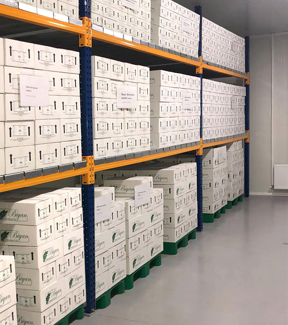 Biyan Sənaye Parkında 18 anbar mövcuddur. Müasir havalandırma sistemi ilə təchiz olunmuş anbarlarlarda saxlanma şəraiti ISO VƏ GMP standartlarına cavab verir. Burada xammal, müxtəlif kimyəvi maddələr, istehsalda işlədilən texniki vasitələr, siroplar vitrin şəraitində yerləşdirilir.